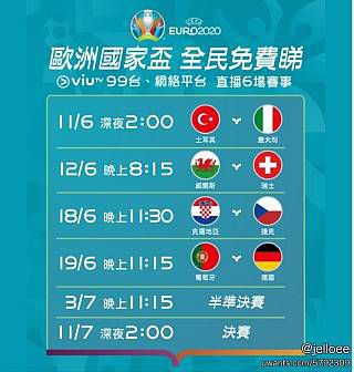 本次「tiktok 2020 歐洲國家盃演唱會」將是一場結合音樂和足球的盛會,將於25日(五)英國夏令 作為 2020 歐洲國家盃的全球贊助夥伴,tiktok 也將在歐洲足協的官方帳號( @euro2020 )上推出一系列主題挑戰、播放列表、ar 效果和獨家直播,炒熱全球期待已久的足球. 5月12日(星期五),法國隊由cedric angot策騎「saxo de la cour」、kevin staut策騎「reveur de hurtebise」、yves roger bost策騎「sangria du coty」及penelope leprevost策騎「flora de mariposa」出戰,在歐洲第一區國際馬聯國家盃障礙賽(fei nations cup. 4k 場場4k既歐洲國家盃 連 4k英超及西甲 早鳥優惠. April 15 at 9:51 pm ·. 請send message 查詢 #nowe #uefa #.